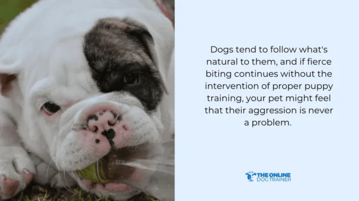 Dogs tend to follow what's natural to them, and if fierce biting continues without the intervention of proper puppy training, your pet might feel that their aggression is never a problem.