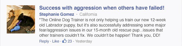 Not only do you get access to the whole section on aggression, but you also get access to my library of how to stop all sorts of other issues such as pulling on the leash, barking, not coming when called and lots more!