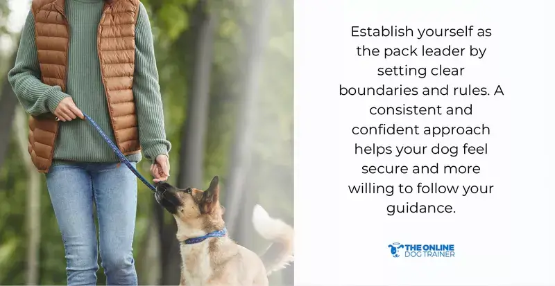 Establish yourself as the pack leader by setting clear boundaries and rules. A consistent and confident approach helps your dog feel secure and more willing to follow your guidance.