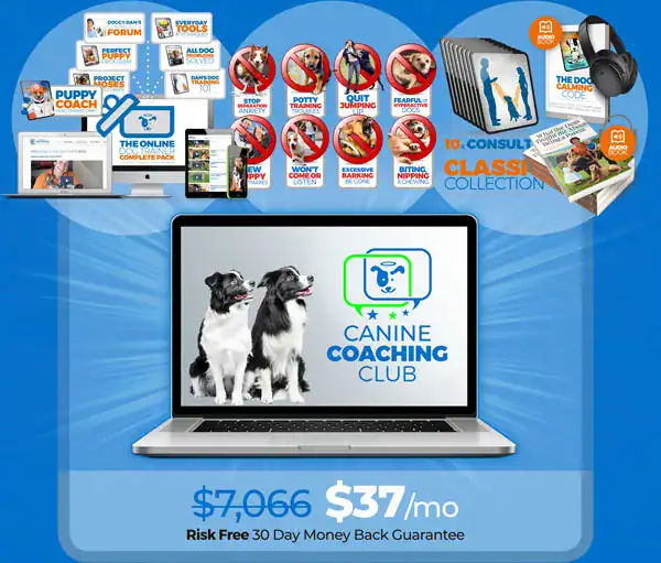 Get the full library, PLUS live coaching and community support to make the training stick… simply by joining the “Canine Coaching Club” today for just $37/mo.