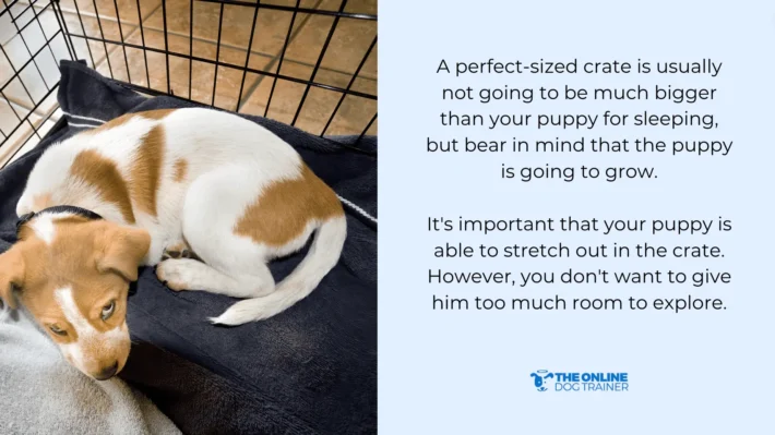 A perfect-sized crate is usually not going to be much bigger than your puppy for sleeping, but bear in mind that the puppy is going to grow.