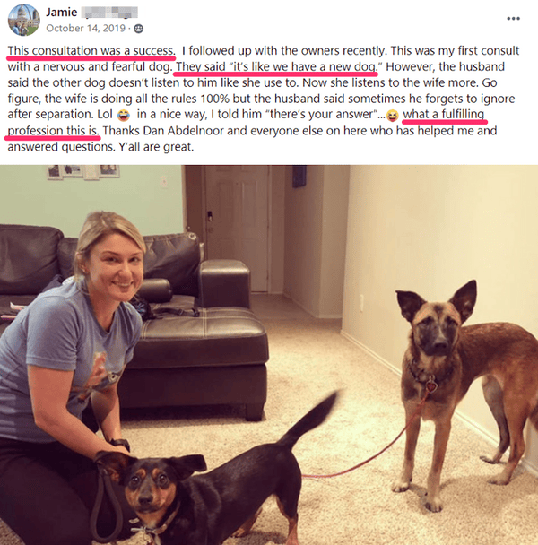 Doggy Dan’s method has helped over 3,500 one-on-one clients and 100,000+ online. It gets incredible results without food bribes, force, or fear.