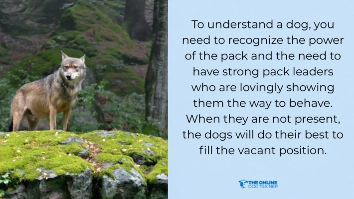 To understand a dog, you need to recognize the power of the pack and the need to have strong pack leaders who are lovingly showing them the way to behave. When they are not present, the dogs will do their best to fill the vacant position.