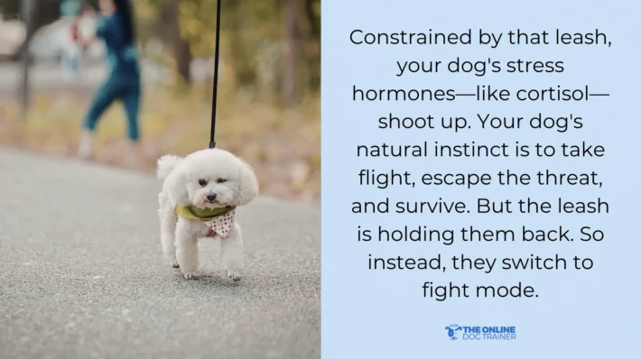Leash reactivity is an involuntary emotional struggle triggered by your dog's fight-or-flight response.