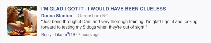 100% Peace Of Mind: With this training you’ll know that you really do have your dog “under control” at all times!
